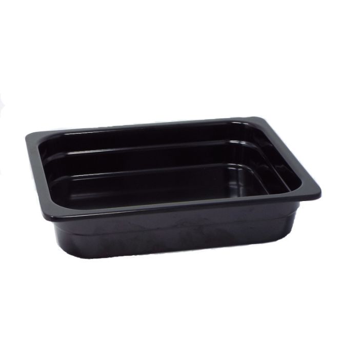 Bacinella di colore nero GN della linea Tray di Efay realizzata in melamina. La melamina è una resina termoindurente pregiata BPA-free utilizzata per la realizzazione di piatti, tazze, ciotole, bicchieri, vassoi ed altre attrezzature per la cucina e la tavola. Esteticamente somiglia alla porcellana, è estremamente leggera e resistente alla rottura, la sua superficie è lucida e liscia, robusta e solida. Sopporta temperature che vanno da -20° fino a 70°C e può essere collocata in frigorifero o nel freezer. Non assorbe gli odori ed è perfetta per essere trasportata in quanto non è fragile. Non può essere collocata a contatto con fonti di calore o utilizzata per riscaldare e preparare cibo nel forno tradizionale o a microonde. Si lava facilmente a mano con spugne non abrasive e detergenti neutri, ma può essere lavata anche in lavastoviglie. Si sconsiglia l'utilizzo di prodotti chimici, oli caldi e nel caso necessitasse di sterilizzazioni si consiglia di utilizzare acqua calda per non più di 20 minuti. La qualità della melamina è fondamentale per ottenere un prodotto sicuro e la melamina EFAY è stata testata e certificata per entrare a contatto con gli alimenti.